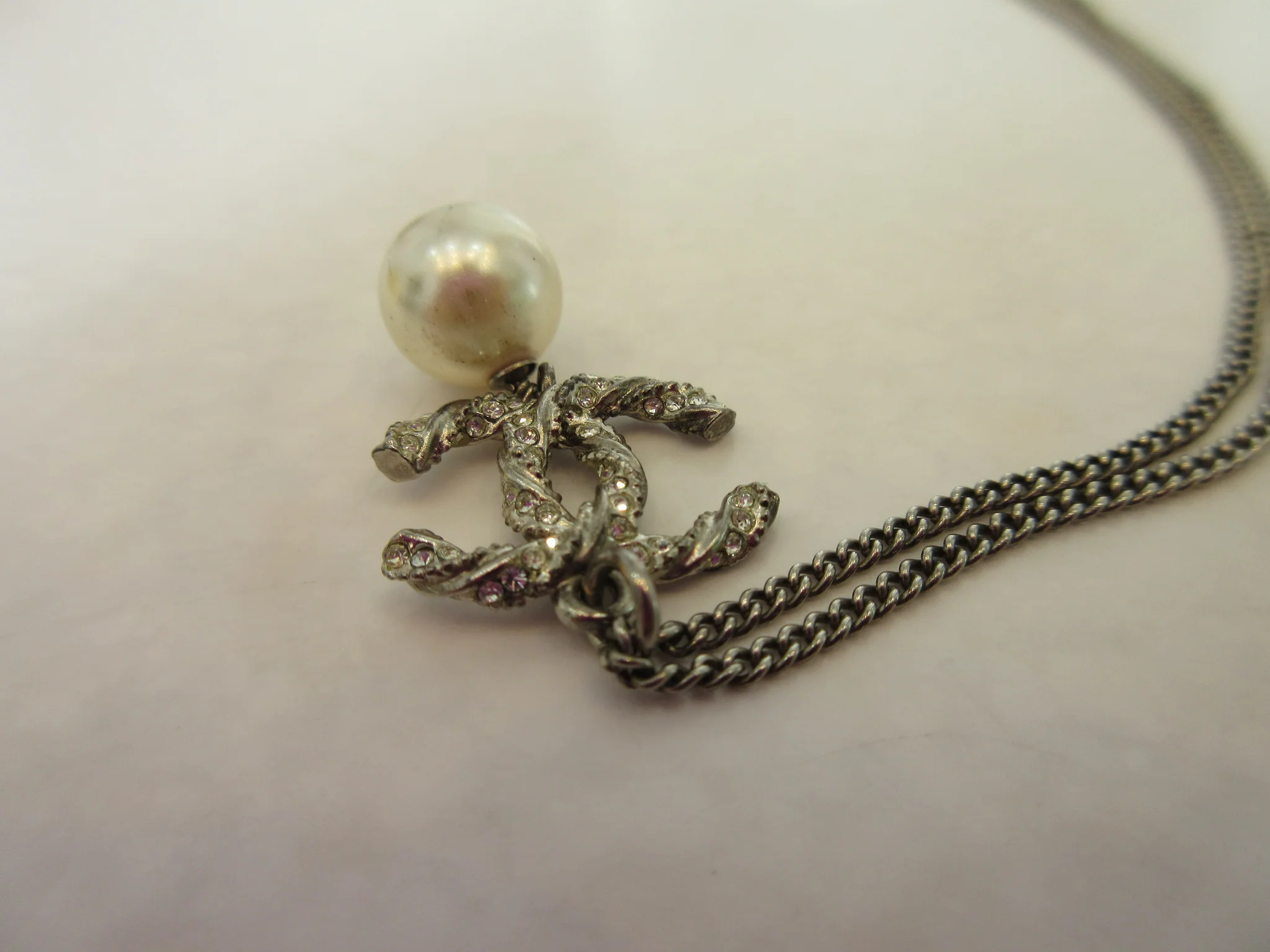 CHANEL/샤넬 코코마크 라인 스톤 목걸이